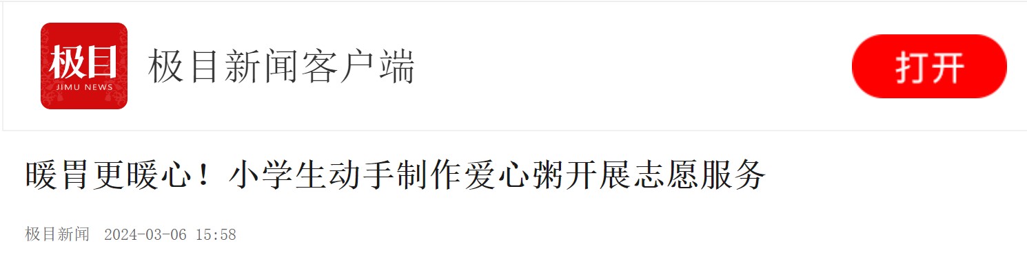 “谢谢你,小朋友!”徐彩云接过这碗甜甜的“爱心粥”,一股暖流滑过她的心底。