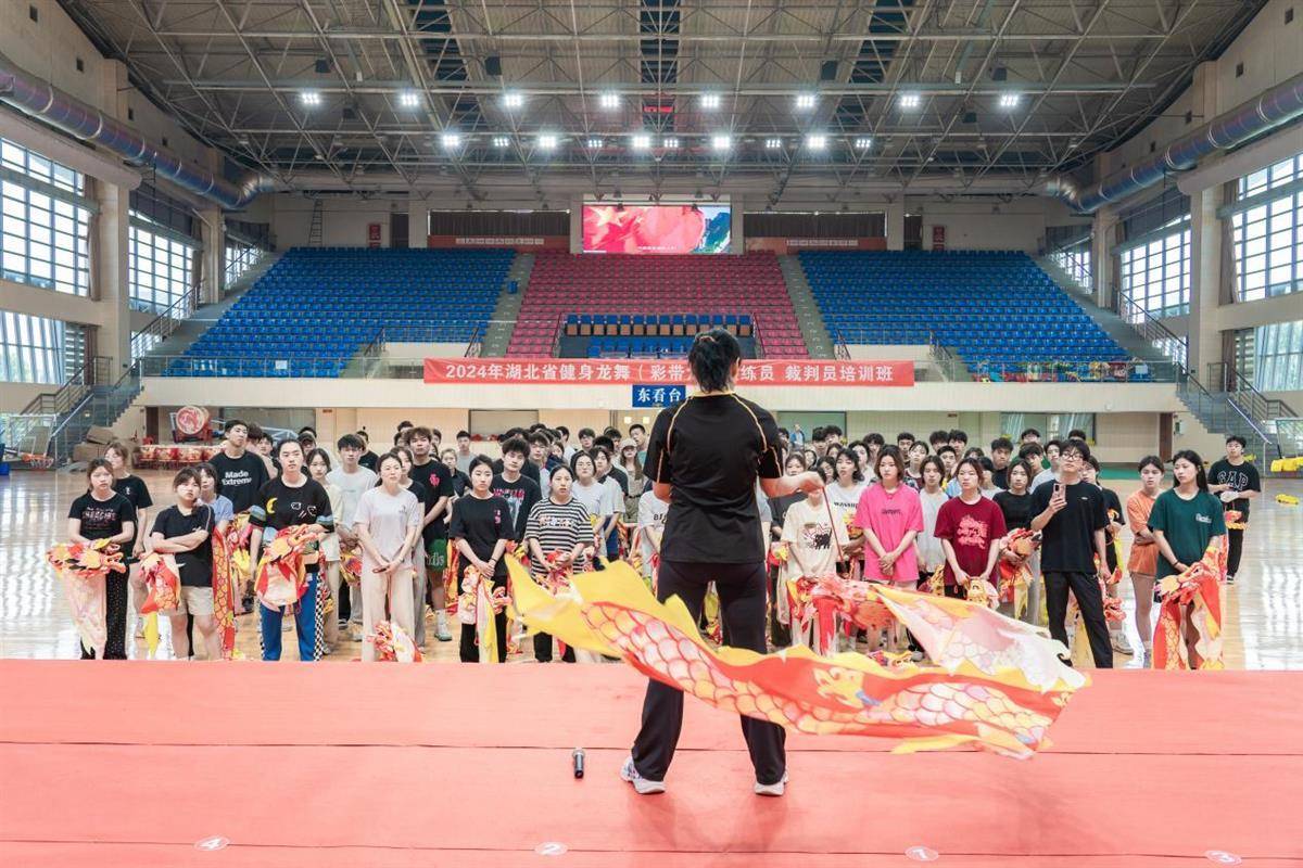 本次培训邀请北京体育大学教授马鸿韬、中国龙狮运动协会教练员委员会副主任梅博威等龙狮运动届大咖为学员授课,内容涵盖健身龙舞(彩带龙)基本技术实践、基本裁判法、自选及推广套路教学。培训结束还对学员进行了理论和技术实践考核。龙舞飞扬、彩带旖旎,培训现场舞动的彩带龙鲜艳夺目,动作刚柔并济焕发生机,无不体现学员们学习的热情。大家纷纷表示,回去后一定做好推广工作,让龙狮文化活跃在荆楚大地的每个角落,让更多群众加入到彩带龙队伍中来,实现“人人能舞龙、人人会舞龙”的盛况。