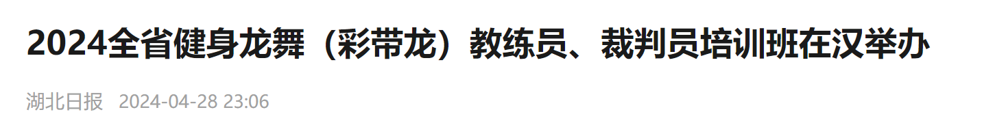 健身龙舞(彩带龙)作为中国龙狮运动协会近年推出的新兴运动项目,凭借其科学合理、简便易学,兼具创新性、健身性、艺术性的优势,助力全民健身事业可持续发展,吸引更多健身人群加入体育锻炼常态化。同时,健身龙舞(彩带龙)入选2025年第十五届全国运动会群众项目舞龙舞狮比赛小项,此次培训旨在加快湖北省彩带龙运动项目的推广,建立健全湖北省彩带龙教练员、裁判员队伍,提升该项目专业化、规范化水平,从而为湖北在2025年全运会的比赛上争金夺冠、增光添彩打下良好基础。
