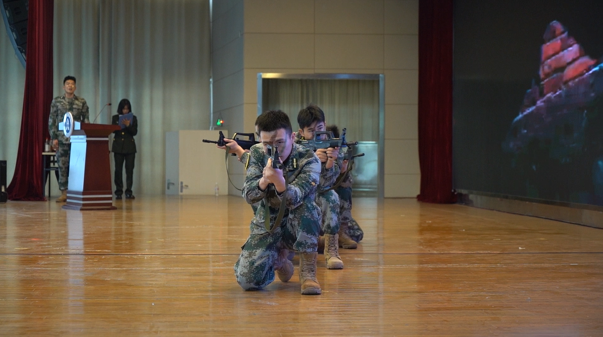 在当天的活动现场,来自国防教育协会的数十位退役复学大学生,给大家作了精彩的战术动作演练和礼兵操枪表演,展现了过硬的军事素养和良好的军人作风,赢得了大家的热烈称赞。