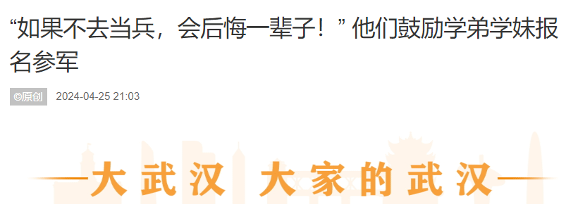 蔡甸区人武部负责人介绍,近年来,人武部积极与对口高校对接,联合开展“征兵宣传进校园”活动。该人武部还将一批品学兼优的退役复学大学生聘为征兵宣传员,组织他们参加征兵宣传活动,向学弟学妹宣传惠兵政策,解惑答疑,取得了较好效果。从2021年至今,蔡甸区每年都高质量完成了征兵工作任务。