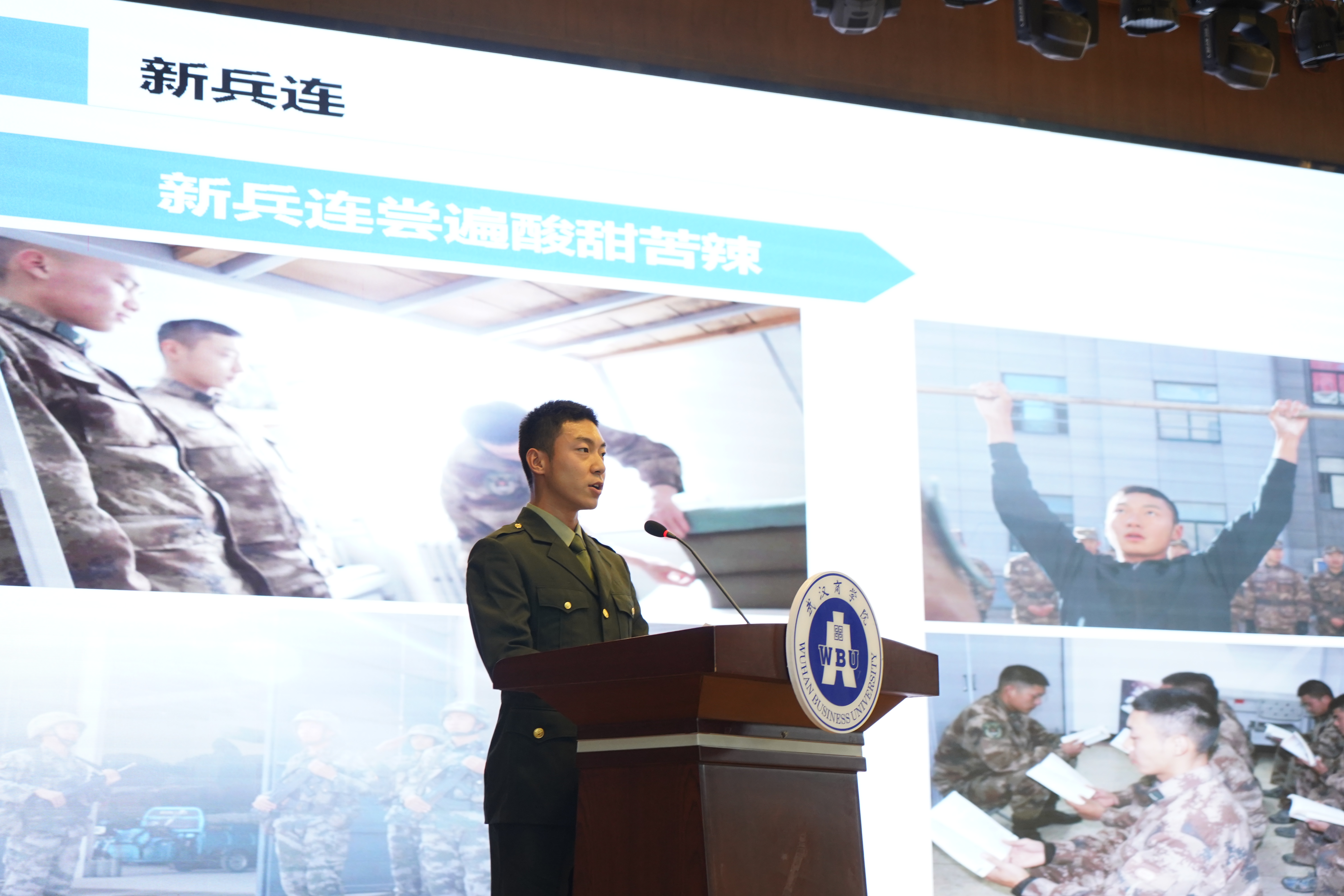 目前在该校大三就读的母兆廷是襄阳人,他从小就对军营生活充满向往。2020年下半年,读大一的他果断地报名参军,顺利通过系列严格考核后,被批准入伍。刚进入部队时,体重70多公斤的他,身体素质一般,体能训练成绩也比较差。但在班长的鼓励和陪伴下,他坚持每天参加强化训练,在短短3个月时间内,将体重减到60公斤左右,并最终成长为所在连队里体能最好的新兵。他感慨道:“在部队这个大熔炉里锻炼一番后,我拥有了强大的抗压能力和坚韧不拔的品质,如今,在生活和学习中遇到困难时,我从不叫苦和喊累,总是能够迎难而上。”