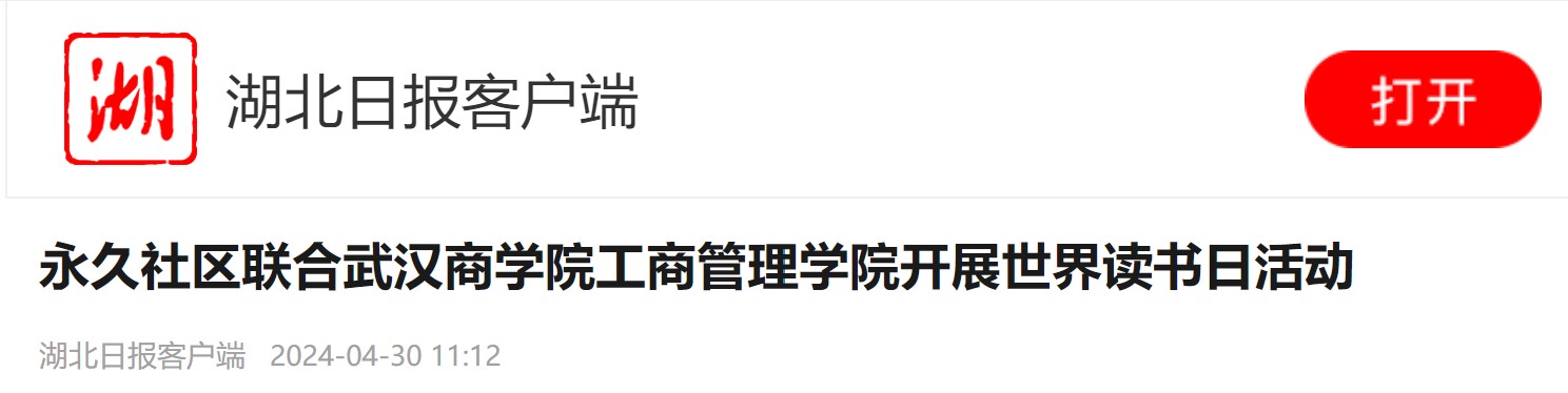 湖北日报客户端讯(通讯员李佳)近日,沌阳街道永久社区联合必赢国际437官网工商管理学院举办“人间四‘阅’,漫卷书香”阅读分享活动。