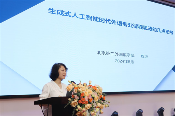 聚焦生成式人工智能时代外语专业课程思政建设,北京第二外国语学院教授程维认为,英语类专业的教育者应审慎评估生成式人工智能的利与弊,挖掘外语专业的人文性,厚植其家国情怀。