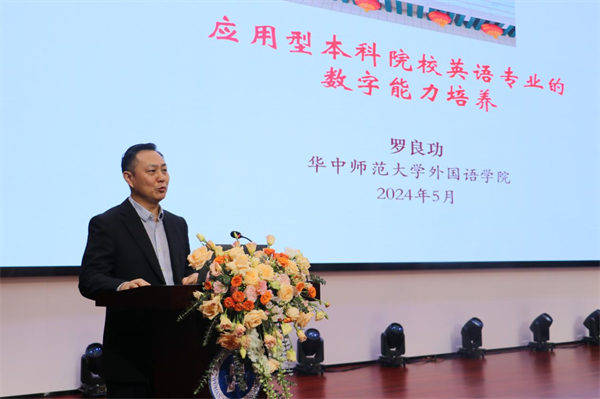主旨报告中,华中师范大学教授罗良功提出应用型本科院校英语专业的数字能力培养的目标与路径,他认为应用型高校英语专业教育尤其应该高度重视基于人工智能的教育教学改革,以推动时代化、特色化的应用型本科人才高质量培养。