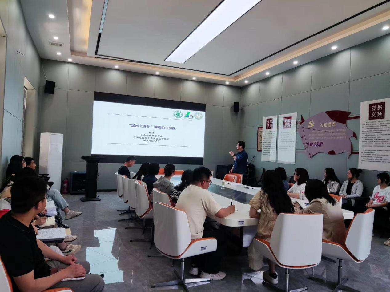 本网讯 5月9日下午,华中农业大学生命科技学院教授陈浩应邀为食品科技学院专任教师和学生代表作了一场题为《“黑米主食化”的理论与实践》的学术报告,报告在食品科技学院205会议室举行,由食品科技学院副院长眭红卫主持。