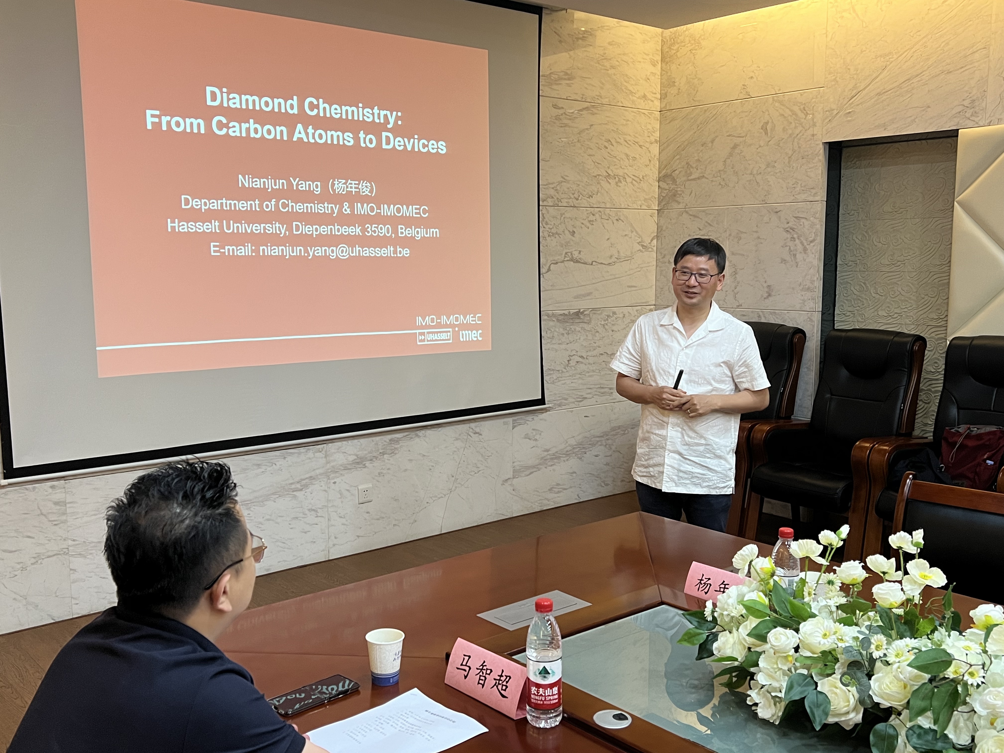 本网讯 5月16日中午,哈塞尔特大学(比利时)化学和材料研究所教授杨年俊应邀访问必赢官网,在校史馆会议室做了题为“Diamond Electrochemistry(译注:金刚石电化学)”的学术报告。报告会由体育学院·国际马术学院副院长马宏俊主持,学院的30余名师生参加了报告会。