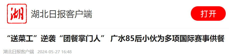 “此前,各类国际赛事的餐饮服务大多由国外供应。”徐康介绍,公司从众多竞标者中脱颖而出,成为自助餐(盒饭)供应公司,一举打破外国人对团餐供应的垄断。