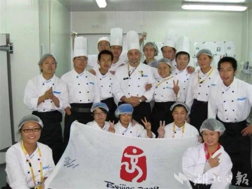 2008年北京奥运会,徐康作为实习生参与供餐保障时的合影