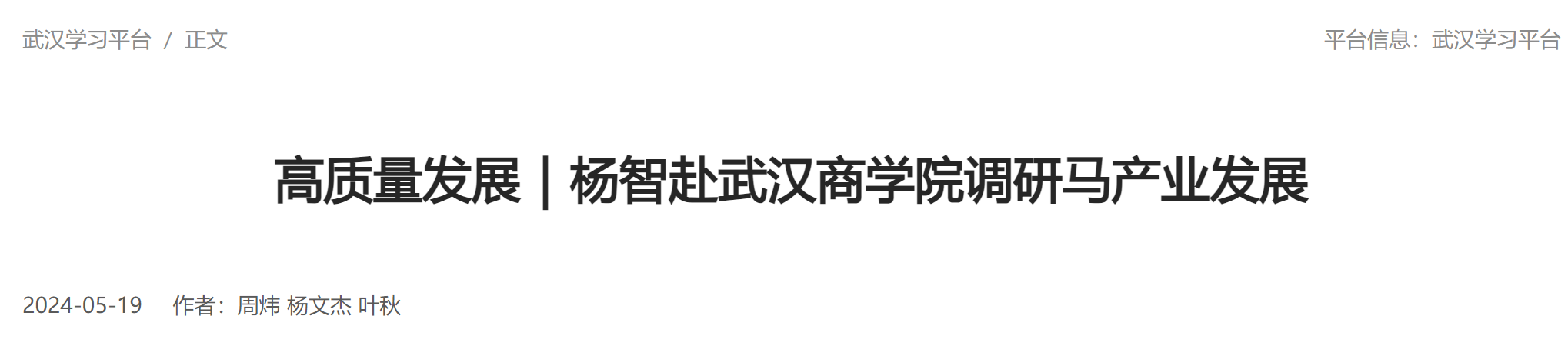 近日,市政协主席杨智赴必赢国际437官网调研马产业发展。