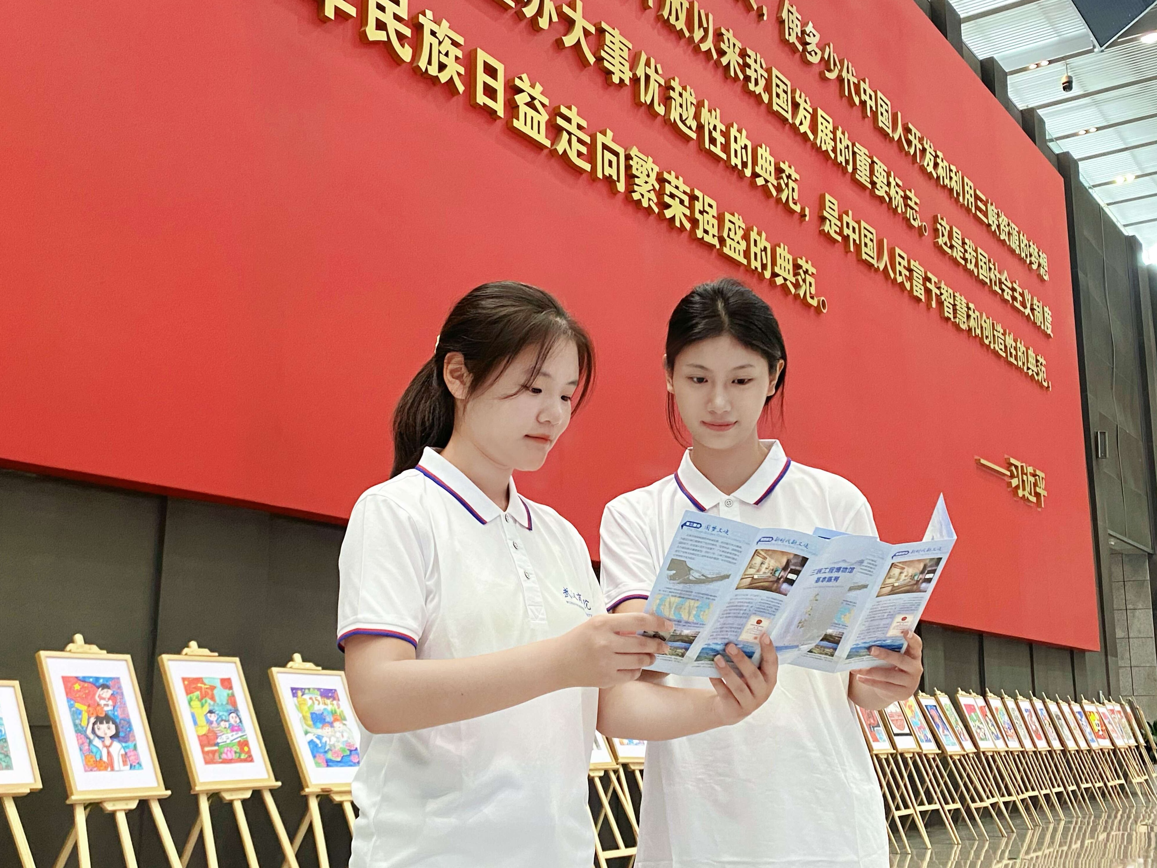 学生在湖北宜昌三峡工程博物馆内开展研学。