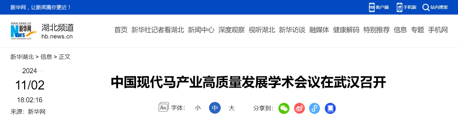 新华网:中国现代马产业高质量发展学术会议在武汉召开