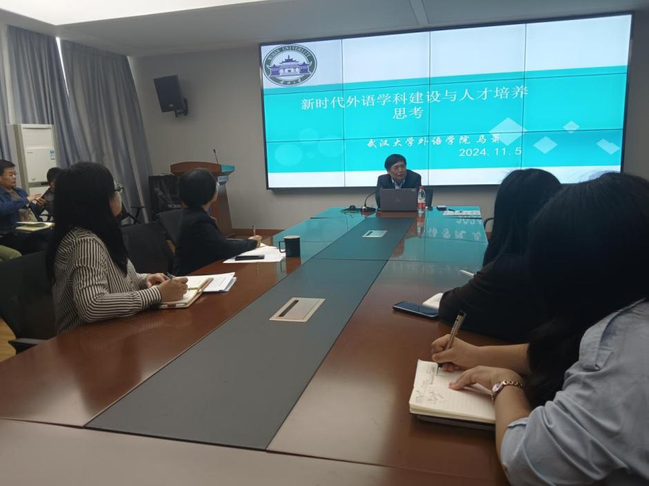 本网讯 11月5日下午,武汉大学外国语言文学学院的马萧教授应邀在外国语学院北四-416B会议室做了题为“新时代外语学科建设与人才培养思考”的学术讲座。本次讲座由李萍院长主持,全体教师出席,共同探讨新时代背景下外语学科的发展趋势。