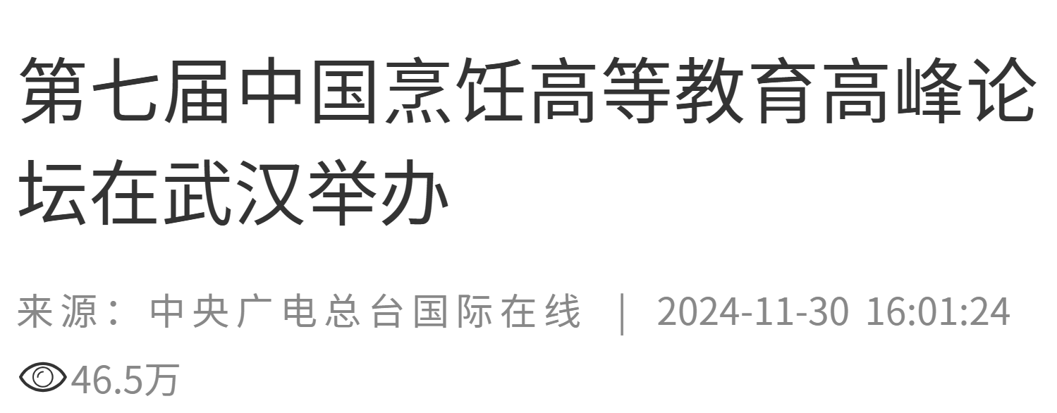 11月30日,第七届中国烹饪高等教育高峰论坛暨首届全国餐饮食品创新设计大赛在武汉举办,40余所高校、150余名专家齐聚一堂,共同探索烹饪教育的新理念、新模式,促进烹饪文化的传承与创新,推动烹饪教育事业的繁荣发展。