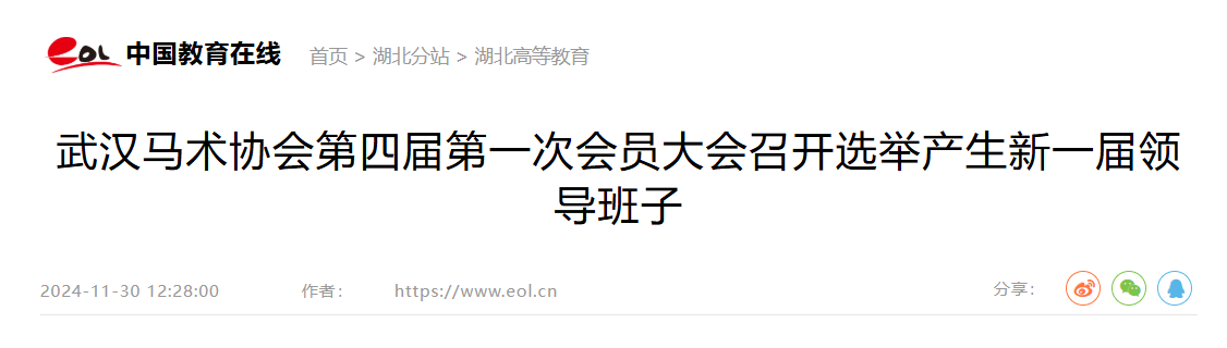 此次武汉马术协会第四届第一次会员大会的成功举办,标志着武汉马术运动发展进入全新阶段,新一届武汉马术协会领导班子将在中国马业发展的新形势下改革创新,追求卓越,携手并肩实现马术运动高质量发展,共创武汉马术事业更加辉煌的明天。(通讯员:李佳 朱云涛 郑梓岩)