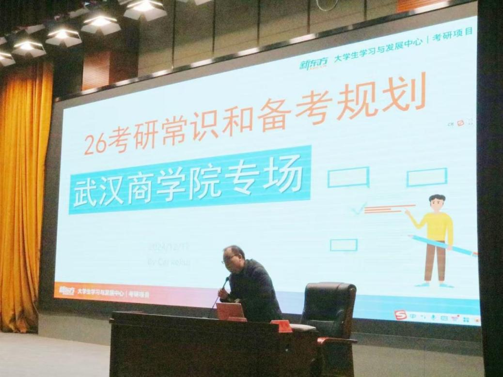 后半场由新东方考研英语名师、中南民族大学翻译硕士蔡克奎阐述,从考研寒暑假复习规划、升学深造拓宽就业路以及考研英语基础词汇与语法等方面,为学生们指明考研的学习方法与备考计划。