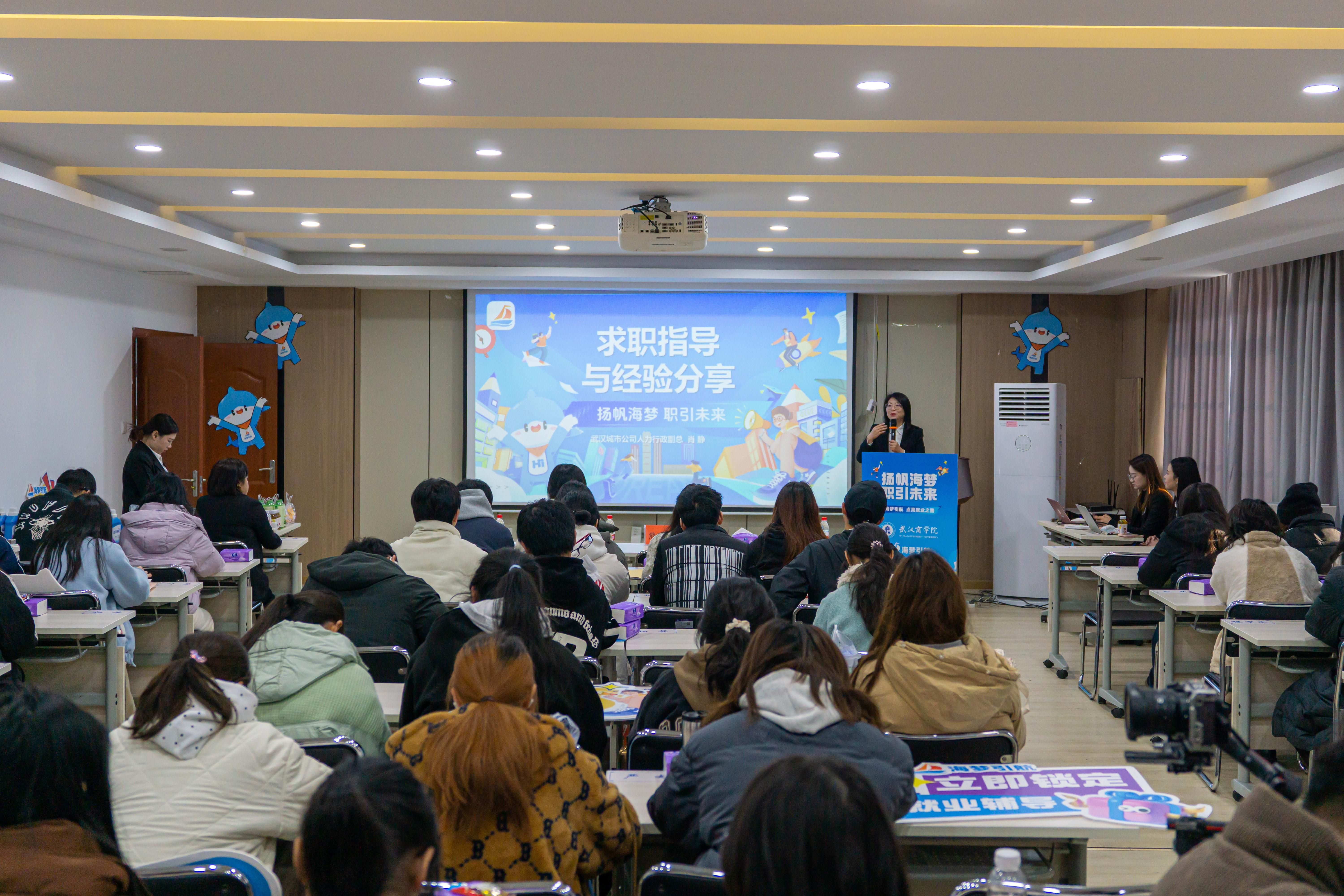 武汉城市公司人力行政副总经理肖静结合自身近20年人力资源管理经验,为同学们深入剖析了就业市场形势,传授实用求职技巧,内容涵盖简历优化、面试笔试、性格测试、行业知识普及、职业规划以及Offer谈判等多个方面。“以前对求职技巧了解不多,这次讲座真是一场及时雨,让我明白了如何更好地展示自己。”23级电子商务二班陈峻圩感慨道。