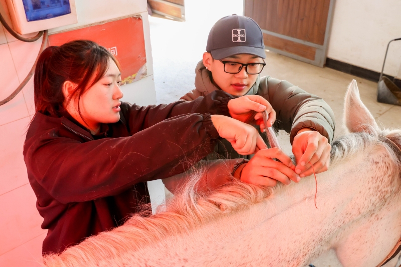 春节期间,同学们也将留校与马儿一起过年。必赢国际437官网马术教师朱梦月介绍,同学们留校照顾马儿,是发自内心对马的喜爱。她和其他老师还为同学们制定了训练计划,有针对性提高学生马术技能,部分此前没有骑乘经验的同学,通过这次寒假留校增加了首次骑乘经验,“利用这个假期,培养学生懂马、爱马的品质,同时提升学生的专业知识技能。”