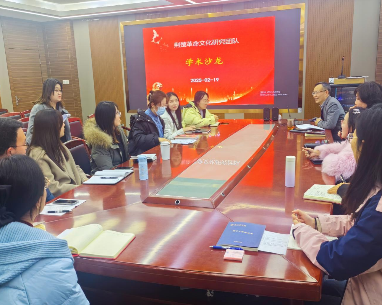 本网讯 2月19日,马克思主义学院在北二219会议室举办了荆楚革命文化研究团队学术沙龙活动,活动由马克思主义学院副院长刘宗劲主持,荆楚革命文化研究团队成员及其他感兴趣的老师参加了此次活动。学术沙龙活动伊始,徐倩倩老师和黄杰老师分别代表两队成员分享了寒假深入赤壁市、嘉鱼县及大悟县实地调研红色资源的见闻和体会。徐倩倩老师表示,通过到赤壁市档案馆查找相关资料、到赤壁市和嘉鱼县红色遗址和烈士陵园拜谒调研,发现在调研中做学问和在书斋中做学问完全不同,收获很大,对习近平总书记反复强调的把论文写在祖国的大地上有了切身感受。黄杰老师则分享了团队成员到大悟县调研红色资源的见闻和感想,他们从多个红色遗址和红色场馆中深刻领悟到革命精神的传承与发展,更加坚定了将学术研究与红色文化相结合的决心。两队成员在调研过程中不仅收集了大量一手资料,还收获了学术感悟,丰富了调研经验。