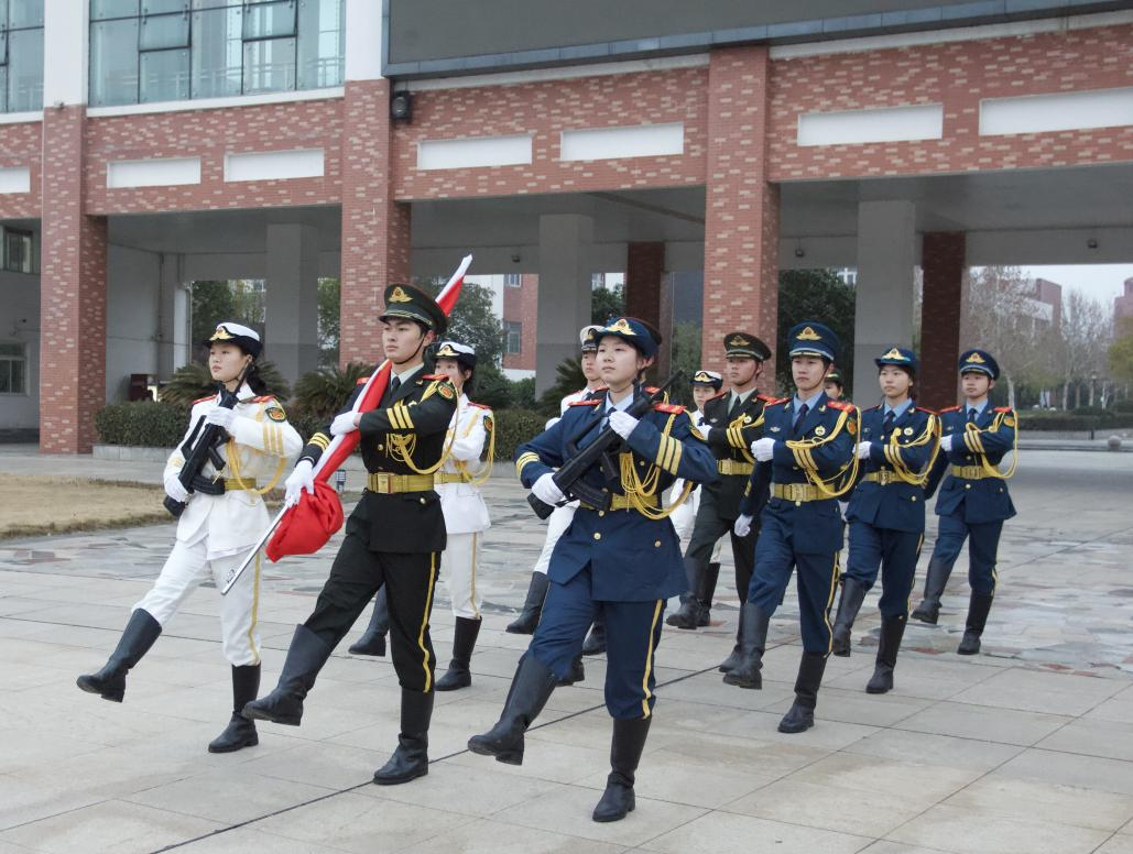 清晨的第一缕阳光洒下,仪仗队的同学们英姿焕发,迈着整齐有力的步伐护送国旗朝着升旗台稳步迈进。他们身姿挺拔,眼神坚定,每一步都仿佛踏出青春的活力与使命感。全体师生满怀崇敬地行注目礼,鲜艳的五星红旗在雄壮的国歌声中缓缓升起,于风中飘扬。现场的学生们庄重伫立,目光中充满对祖国的热爱与敬意。
