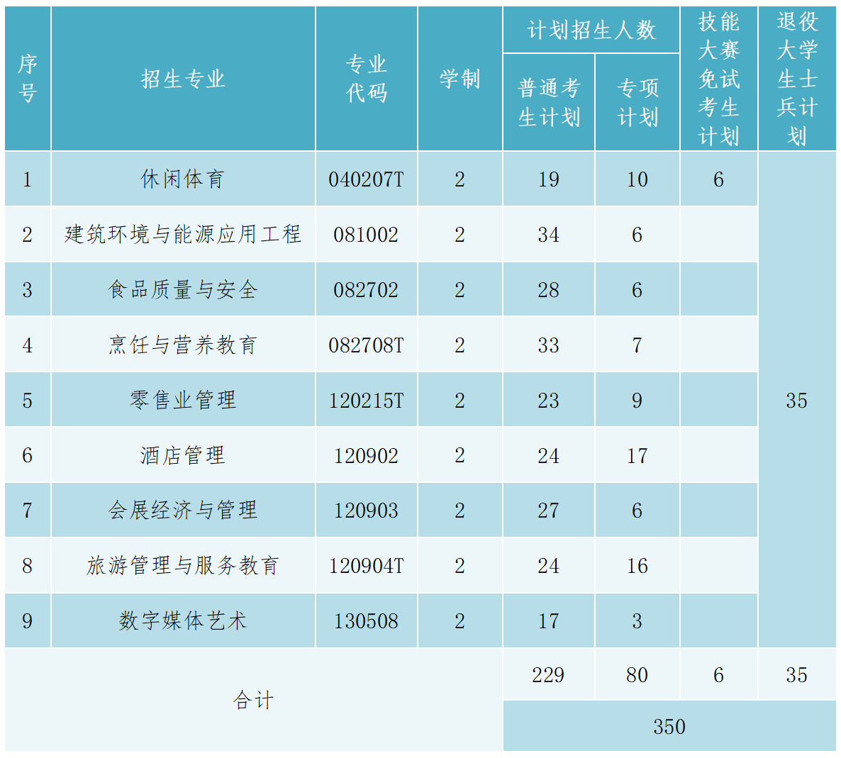 学校在保持本校普通考生计划和专项计划总量不变的情况下,可根据考生报名情况对普通考生计划和专项计划进行适当调整。调整规则为:①因专项计划报考总人数不足出现计划空余的,可将专项计划空余量调整至相应专业的普通考生计划使用。②退役大学生士兵计划和技能大赛免试考生计划不调整到其他类别计划使用。招生计划调整情况拟于3月下旬在学校教务处主页“普通专升本”专栏中公布。