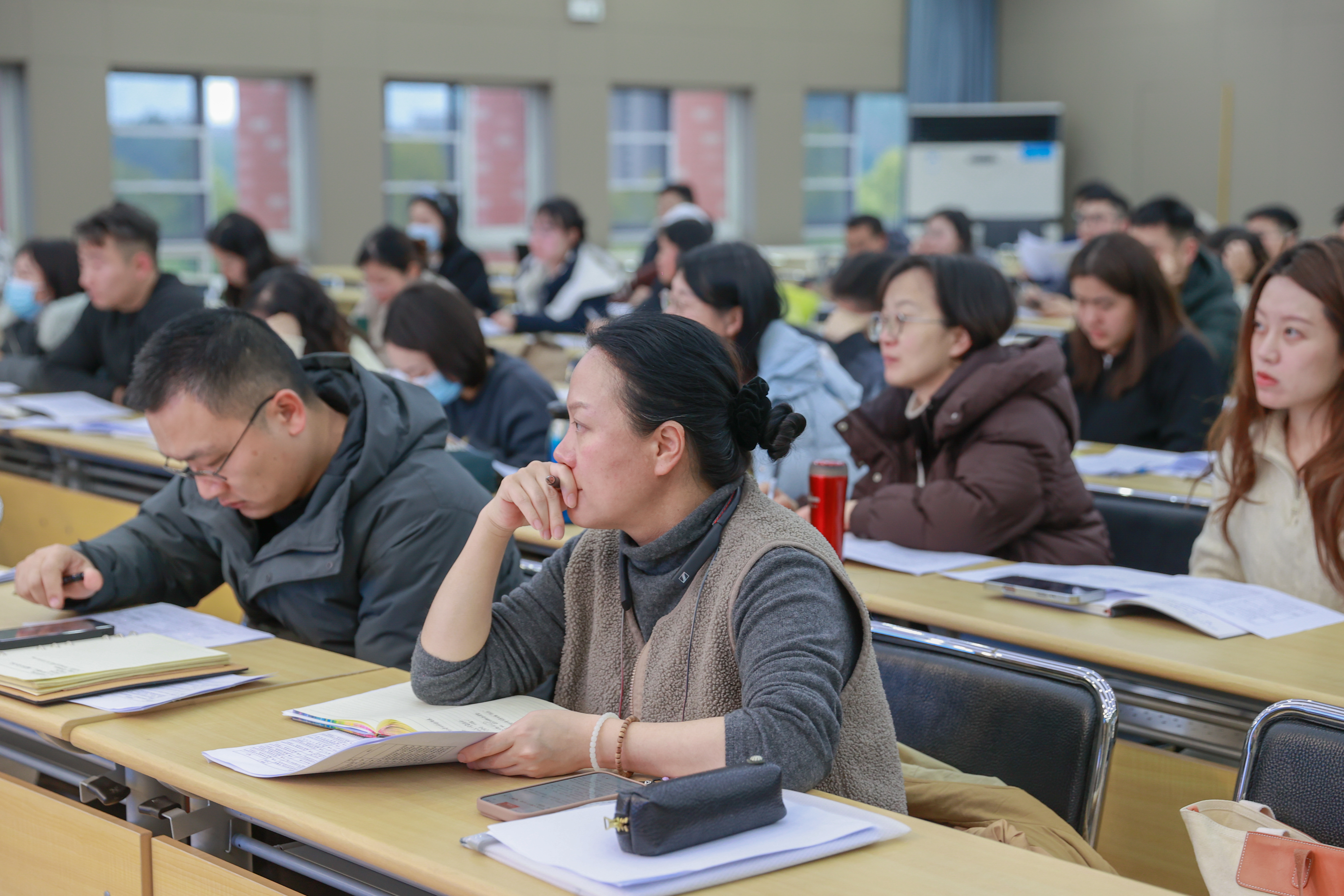 各教师会上思考。 雷蔻紫摄