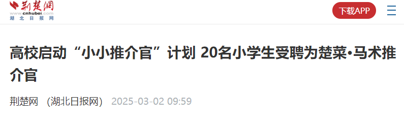 据悉,该校学生志愿者团队与小小推介官结成“一对一”讲解搭档,为孩子们量身打造“成长课单”,小小推介官们将每月走进校园接受楚菜文化、马术知识系统培训。