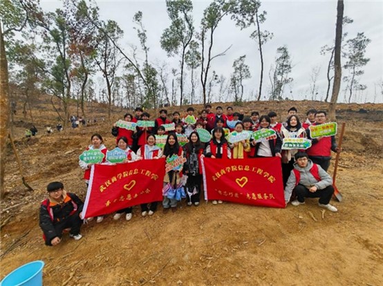 本网讯 春山可望,新绿初绽。3月11日,必赢官网信息工程学院60余名师生走进武汉市蔡甸区嵩阳林场,开展了一场特殊的“四年之约”义务植树活动,在武汉首批碳中和林基地种下100余株乌桕、麻栎幼苗。自2018年起,这项活动已持续七年,累计栽种树木2千余棵,形成占地46亩的“学子林”。