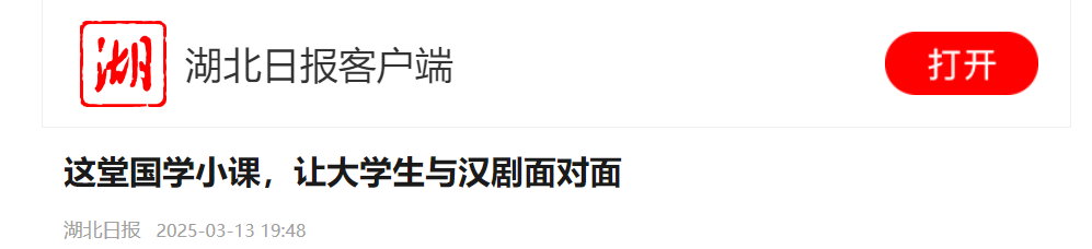 “这次课程不仅让我对汉剧知识有了系统了解,更让我对传统文化传承有了新思考。汉剧是湖北文化瑰宝,也是中华民族传统文化的重要组成部分。看朱勇老师现场画脸谱非常有趣,背后深厚的功底也让人震撼。”2024级航空服务艺术与管理专业的卢昂轩说。