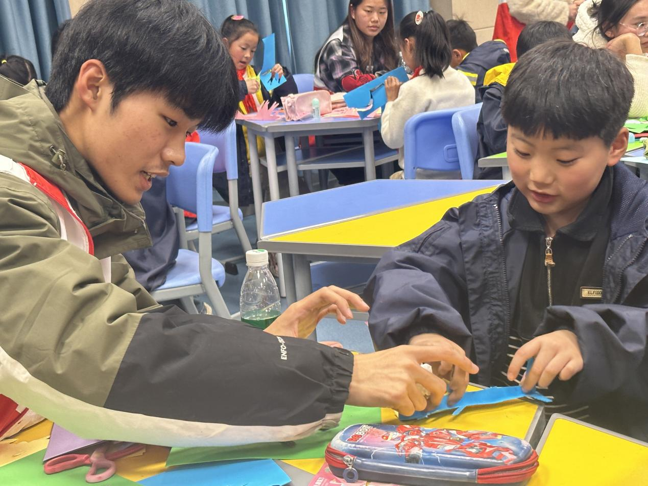 活动伊始,志愿者们带领孩子们用彩纸折叠“立体树”。在轻柔的音乐声中,孩子们跟随指导耐心折叠、拼接,逐渐将平面的纸张变成一棵棵生机勃勃的“春日之树”。这一环节不仅锻炼了孩子们的空间思维能力,更以“折纸是艺术,更是培养创造力的钥匙”的理念,引导孩子们在动手实践中感受自然之美与人文之韵。