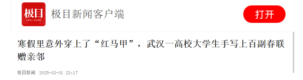 这个寒假里,黄曾嘉不仅练习了书法,更收获了属于自己的满满年味,也将一份份寓意美好祝愿的春联赠予与老家的乡亲们。“我妈妈发的朋友圈经常会出现我的作品,她们单位校长知道后就邀请我去给她们员工写春联。”后续,黄曾嘉还将继续为有需要的人写春联。