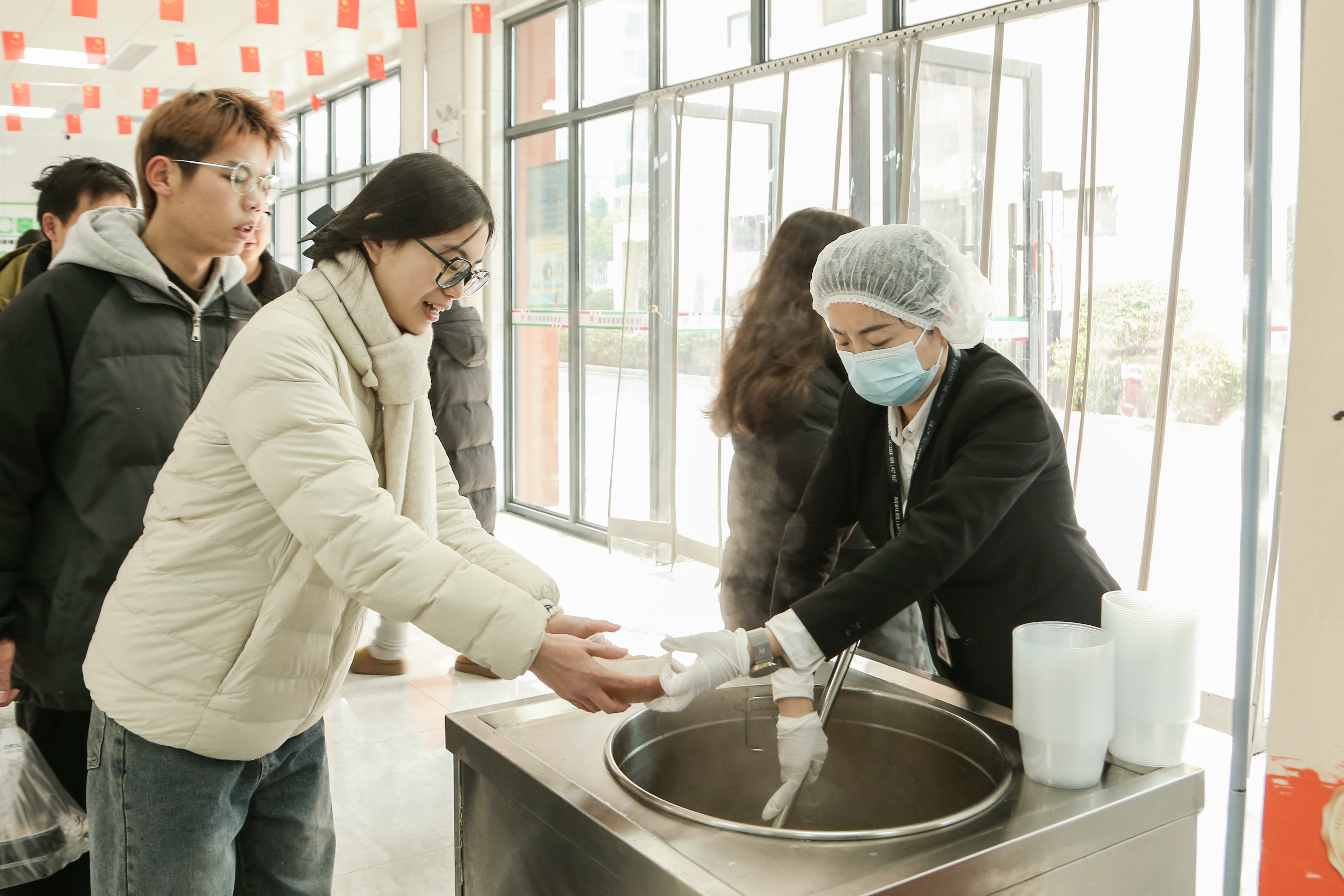 “去年开学的时候,我来学校吃的第一餐就是热干面,没想到寒假结束返校,又吃了‘同款’”大一学生李佳依来自河南,再次吃上热干面的她,更希望“见面”活动可以延续下去。“一碗热干面,是学校对我们的牵挂,也是我们对学校的期待。”李佳依说。