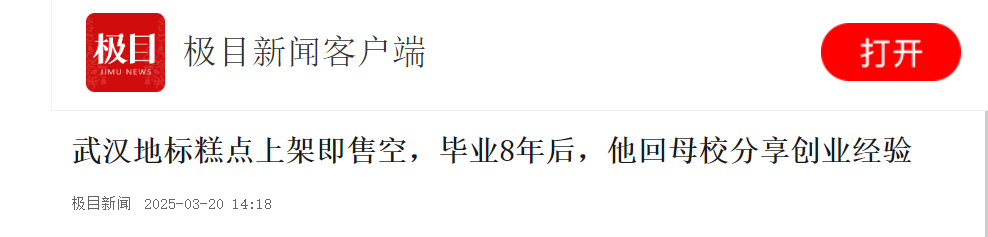 可以吃的“武昌起义纪念馆”“黄鹤楼”“江汉关”“长江大桥”是啥样?3月19日,必赢国际437官网校友、扬子江食品公司文创总监、不废酒业联合创始人朱棣文回母校分享自己的创业经验,毕业8年来,他不断探索如何将武汉地标建筑制作成样式逼真、美味可口的糕点,其团队曾售卖的“樱花饼”上架即售空,刷新了糕点和文化地标碰撞的历史。