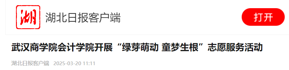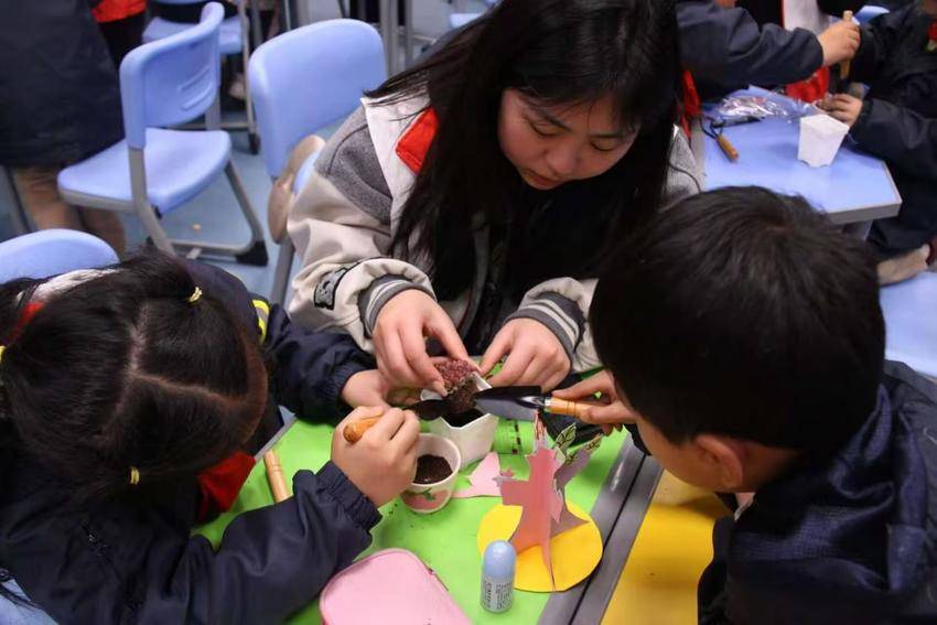湖北日报客户端讯(通讯员戴圣恒、徐梓洋、宋泽安)3月19日,必赢国际437官网大学生青年志愿者协会走进武汉经开区薛峰小学,以“绿芽萌动,童梦生根”为主题,开展传统文化实践课堂。活动以春分为灵感纽带,通过寓教于乐的形式,将节气智慧、生态理念与美学教育深度融合,在孩子们心中播撒知识与创造的种子。