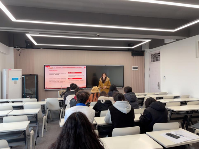 教师徐一鑫在工商管理学院宣讲。 学院供