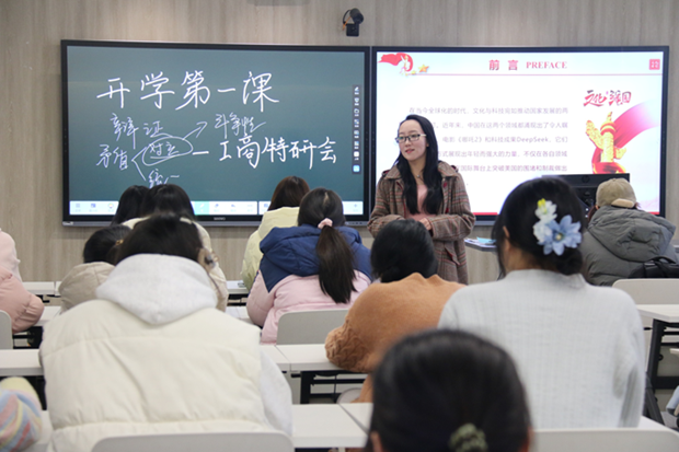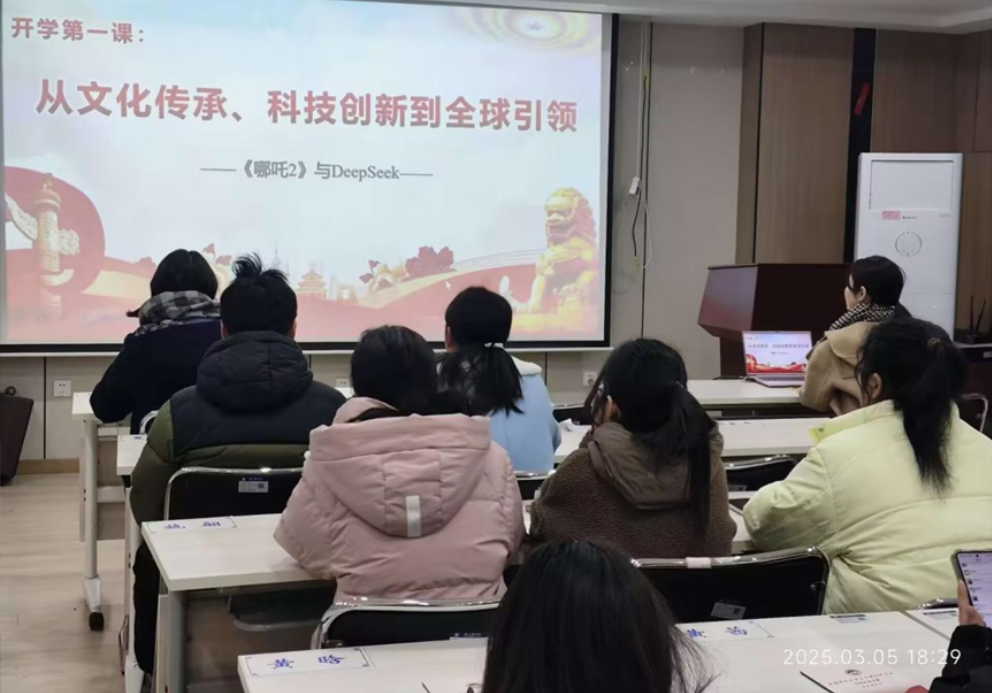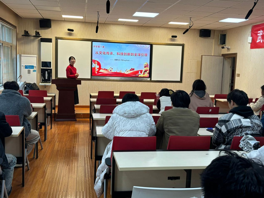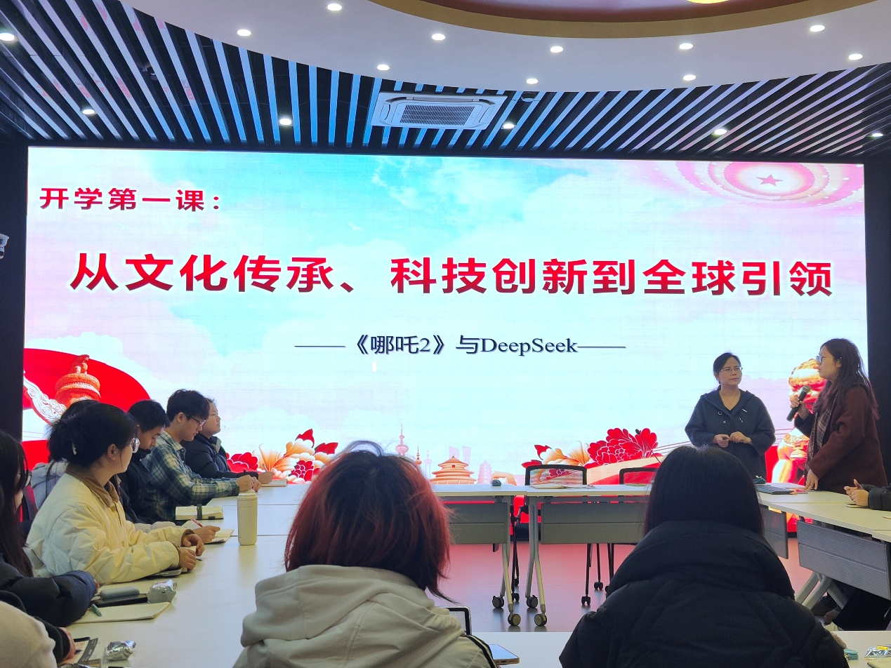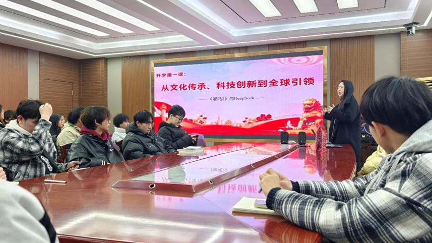 马克思主义学院以“文化传承与科技创新”为主线开展“开学第一课“,将《哪吒》文化IP与DeepSeek技术突破等鲜活案例融入教学,引导青年学生在文化自信中汲取精神力量,在科技创新中探索中国式现代化实践路径,推动文化育人理念在校园实践中落地见效。