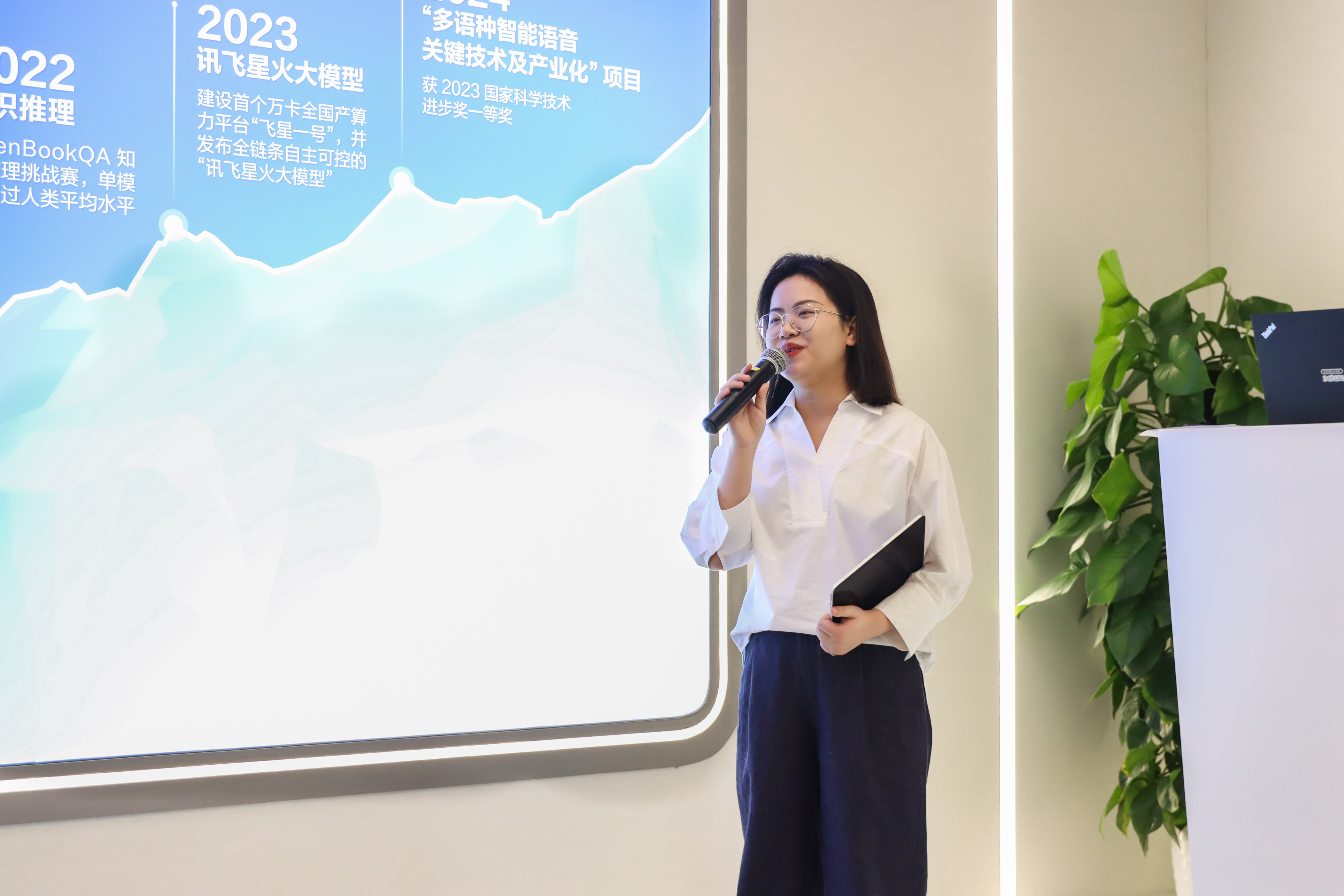 “在人工智能漫长的发展进程中,科大讯飞究竟是如何一步步崭露头角的呢?”在科大讯飞,师生们在工作人员的引领下,步入了充满科技魅力的人工智能展厅。讲解员陈丽芳细致地勾勒出科大讯飞的发展脉络,从语音识别技术的早期重大突破,到当下在AI教育、AI医疗、AI办公等多领域的全面布局。2023级软件工程与精英计划班的白文庭,对科大讯飞生成PPT的技术兴趣浓厚,他请讲解员借助讯飞智文生成了一份关于《为什么是中国》书籍读书分享会的PPT。当看到PPT以极快的速度生成,且质量相当出色时,白文庭不禁赞叹:“这生成速度之快超乎想象,质量更是无可挑剔!”