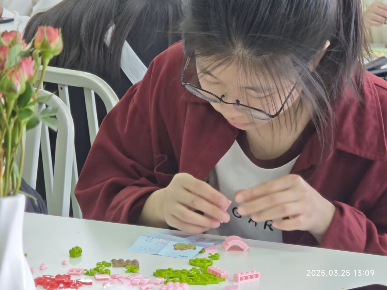 在创意实践环节,“心灵积木工坊”引发热烈互动。参与者利用木质积木构建象征健康成长的立体模型。机器人专业李同学的作品中,层层叠叠的齿轮结构寓意“知识积累与心理韧性同步提升”,赢得同伴点赞。同步开展的心理健康知识竞答则聚焦实际场景,设置“考前焦虑应对”“宿舍关系处理”等20道情景题,答对者获赠学院定制的洗面巾和实用的小风扇。