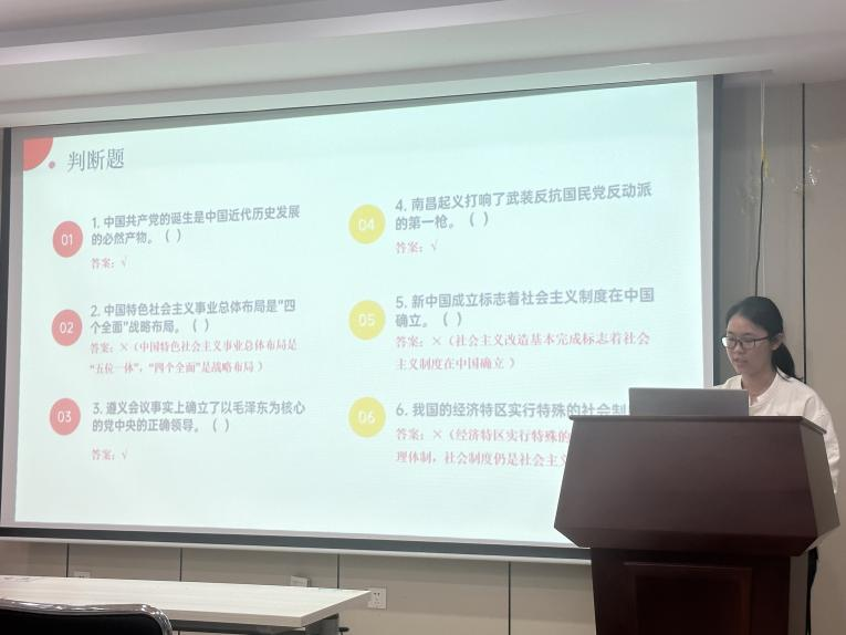 “从党的光辉历程到重大历史事件,都强化了我对党史知识的理解。”2022级财务管理专业黄唯程分享。本次活动创新性地采用“以赛促学”的教育形式,设计了多个环节,题目内容涉及新民主主义革命时期、社会主义革命和建设时期、改革开放新时期以及中国特色社会主义新时代四个关键历史阶段。