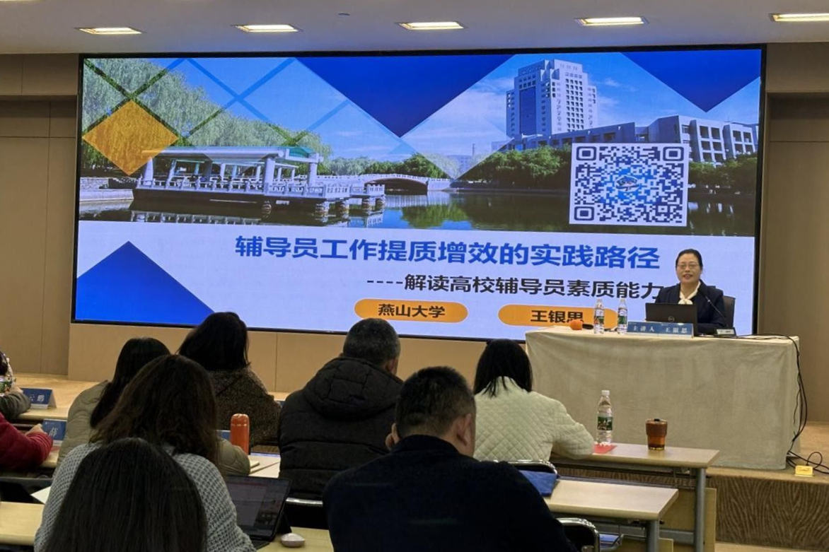 本次培训以“辅导员工作提质增效”为主题,邀请了全国高校优秀学生工作者、燕山大学党委学生工作部副部长、学生工作处副处长王银思教授作专题报告。王教授以《辅导员工作提质增效的实践路径--解读高校辅导员素质能力大赛》为题,深入解读了高校辅导员素质能力大赛的内涵和意义,并结合自身丰富的学生工作经验,分享了辅导员工作的实践路径和方法。