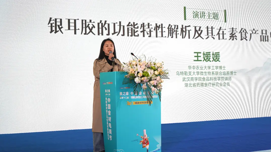 食品科技学院博士王媛媛作题为《银耳胶的功能特性解析及其在素食产品中的应用》的报告。系统阐述了银耳胶的功能特性及其在素食产品中的应用潜力。其独特的物理特性(如高持水力、持油力及剪切恢复性)使其在食品工业中可作为增稠剂、稳定剂和胶凝剂,有效改善产品质地并延长保质期。此外,银耳胶的抑菌功能及天然来源特性契合健康消费趋势,尤其适用于植物基食品创新。我国作为银耳主产国,资源丰富但深加工不足,开发银耳胶不仅可提升资源利用率、减少浪费,还能推动功能性食品产业发展,满足消费者对营养与天然添加剂的多元化需求。未来,银耳胶有望成为新型食品添加剂的核心原料,为素食及健康食品领域提供可持续解决方案。