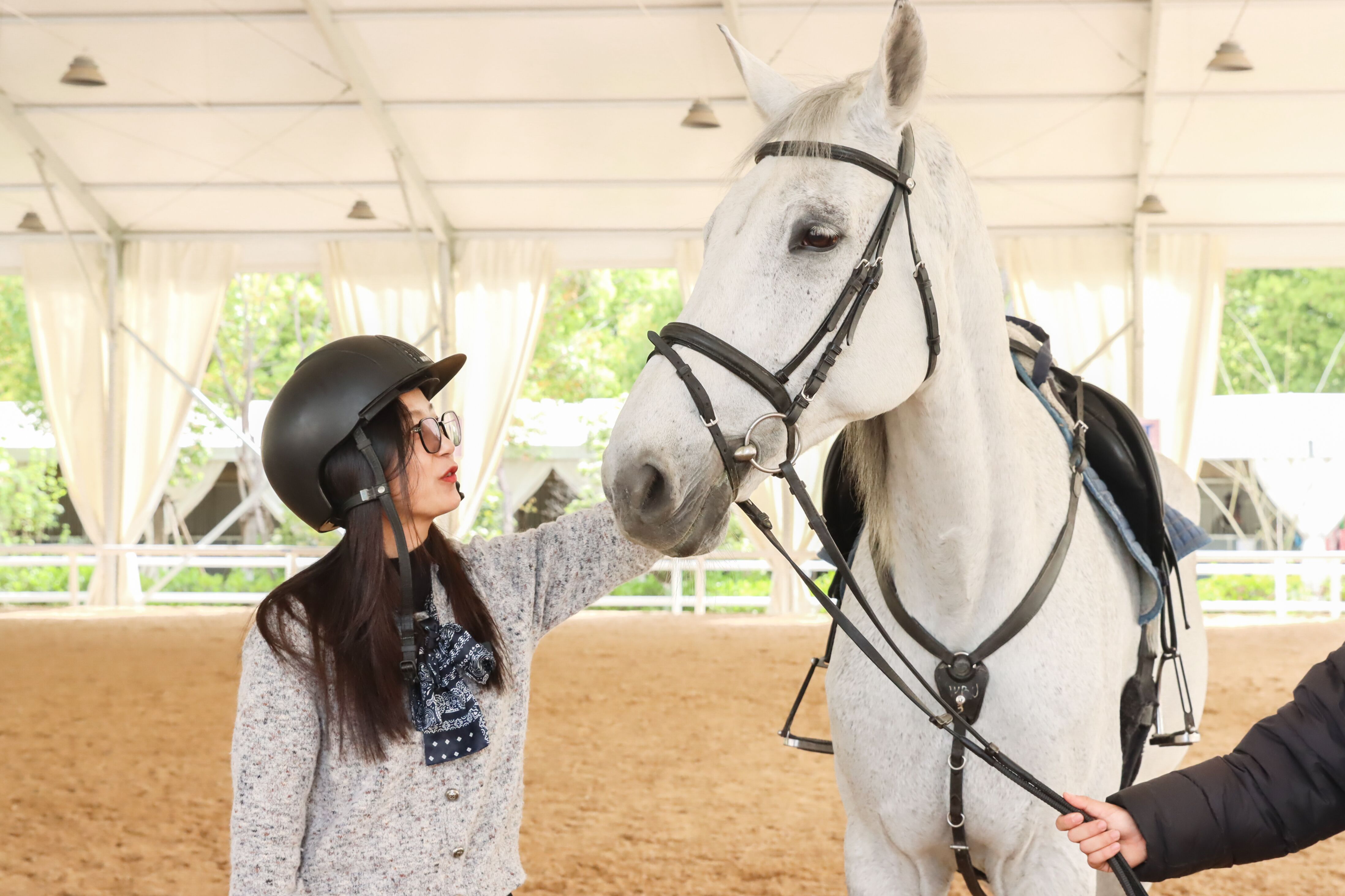 西藏代表团参观马场互动。 陈思涵摄