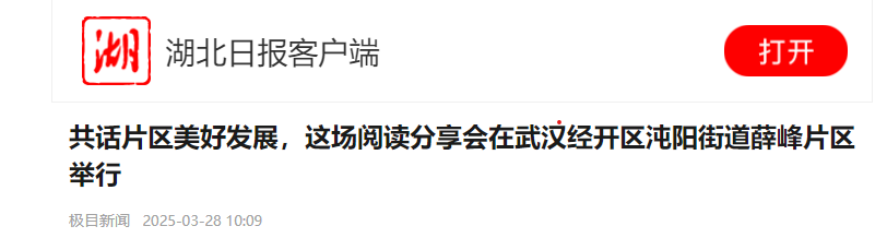 薛峰片区综合党委将继续以书为媒,开展读书沙龙、红色经典共读等系列活动,搭建社区、高校、企业联学共建的桥梁,以学促干,推动全民阅读与基层党建、社区治理、企业发展深度融合,为谱写高质量发展新篇章注入强大精神动力和文化动力。