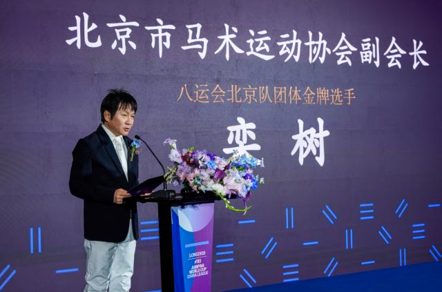 北京市马术运动协会副会长、著名音乐人、八运会北京队团体金牌选手栾树,在发布会上作为运动员代表发言。他表示:“很珍惜浪琴表国际马联场地障碍世界杯中国联赛与国际顶尖骑手同场竞技的机会,希望在赛场上不断学习,提升自己的实力。相信赛事举办将吸引更多人了解、喜爱马术运动,推动中国马术事业迈上新的台阶。期待更多年轻人加入到马术运动中来,共同推动这项运动的普及和发展。”