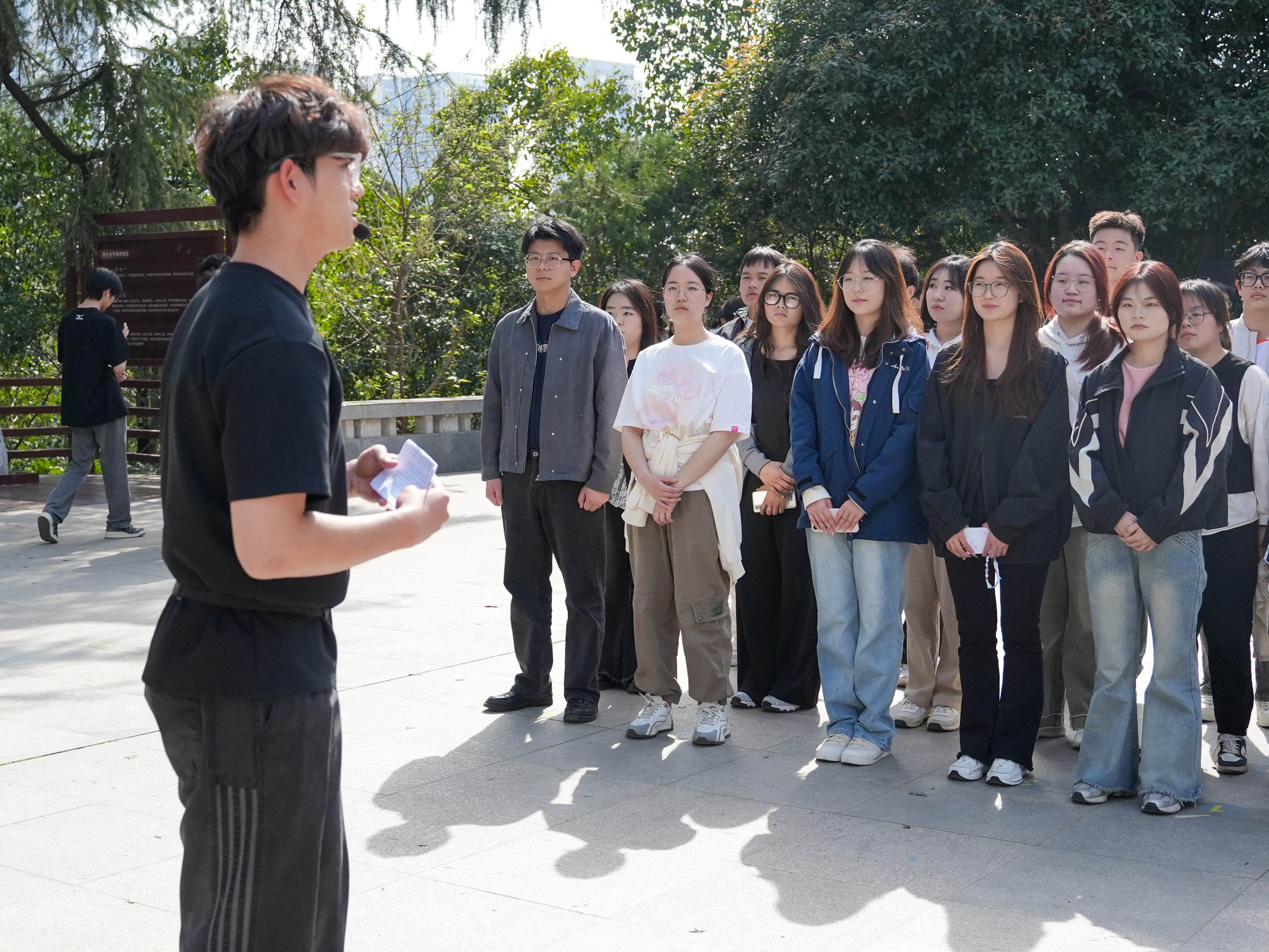 同学们以整齐的队形、坚毅的姿态肃立在向警予烈士雕塑前,全场寂静凝重,所有人低头,屏息默哀,向先烈献上最诚挚敬意。2024级旅游管理学院的刘仕豪担任此次活动的讲解员。他站在烈士墓前,声音坚定地为同学们讲述:“向警予牺牲时年仅33岁,她用短暂而光辉的一生,诠释了对党的无限忠诚、对革命事业的执着追求以及对妇女解放的不懈努力。”随着他的讲述,向警予烈士的英勇事迹如同一幅画卷在师生们眼前徐徐展开。2024级金融二班的郑昕辰在聆听讲解后深受触动,他感慨道:“向警予烈士以信仰为火炬,用生命书写了‘为真理赴死’的壮丽篇章。面对酷刑与死亡,她高呼‘革命者光明磊落’,这份坚贞气节跨越百年,依然熠熠生辉。我深刻认识到,真正的进步,离不开先驱者以热血铸就的丰碑,而丰碑之下,是永不熄灭、代代相传的精神火种。”