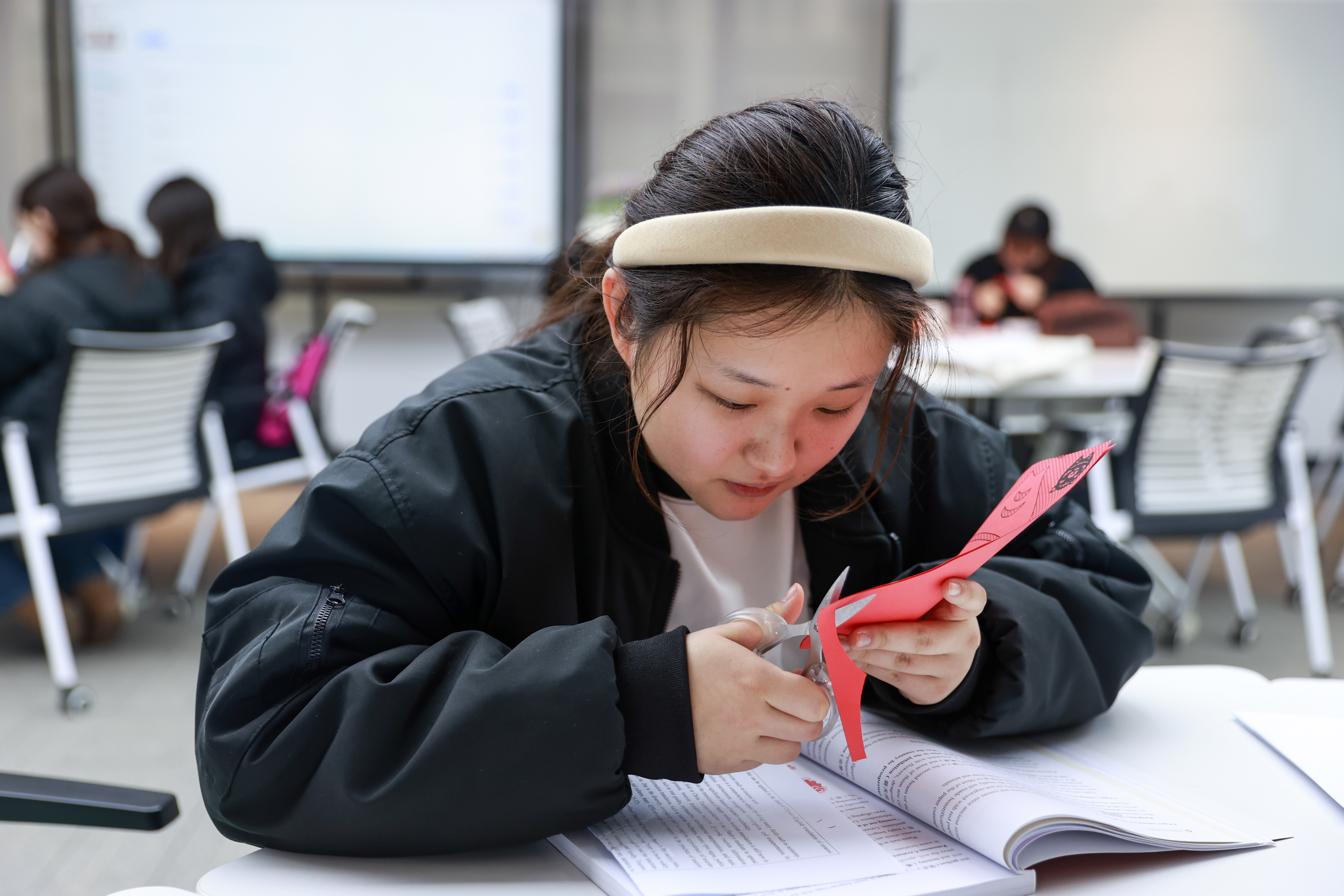“通过沉浸式教学体验,同学们可以在亲身实践中深入了解中国传统文化,尤其是像剪纸这样的民间艺术,同时结合专业的外语知识,成为中国文化对外传播的有力推动者。”唐金凤说。