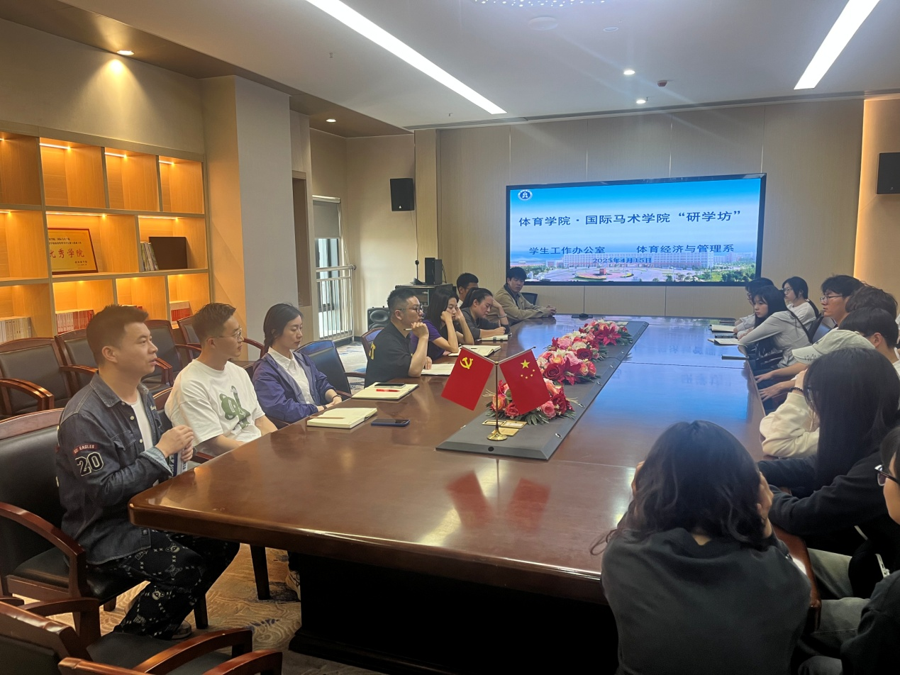 本网讯 4月15日,体育学院·国际马术学院学生工作办公室与体育经济与管理系联合在学院党建会议室开展第二场“研学坊”活动。体育学院·国际马术学院体育经济与管理系6位教师代表和学院20位体育经济与管理专业的学生代表围绕交叉融合背景下的体育人才培养展开探讨。