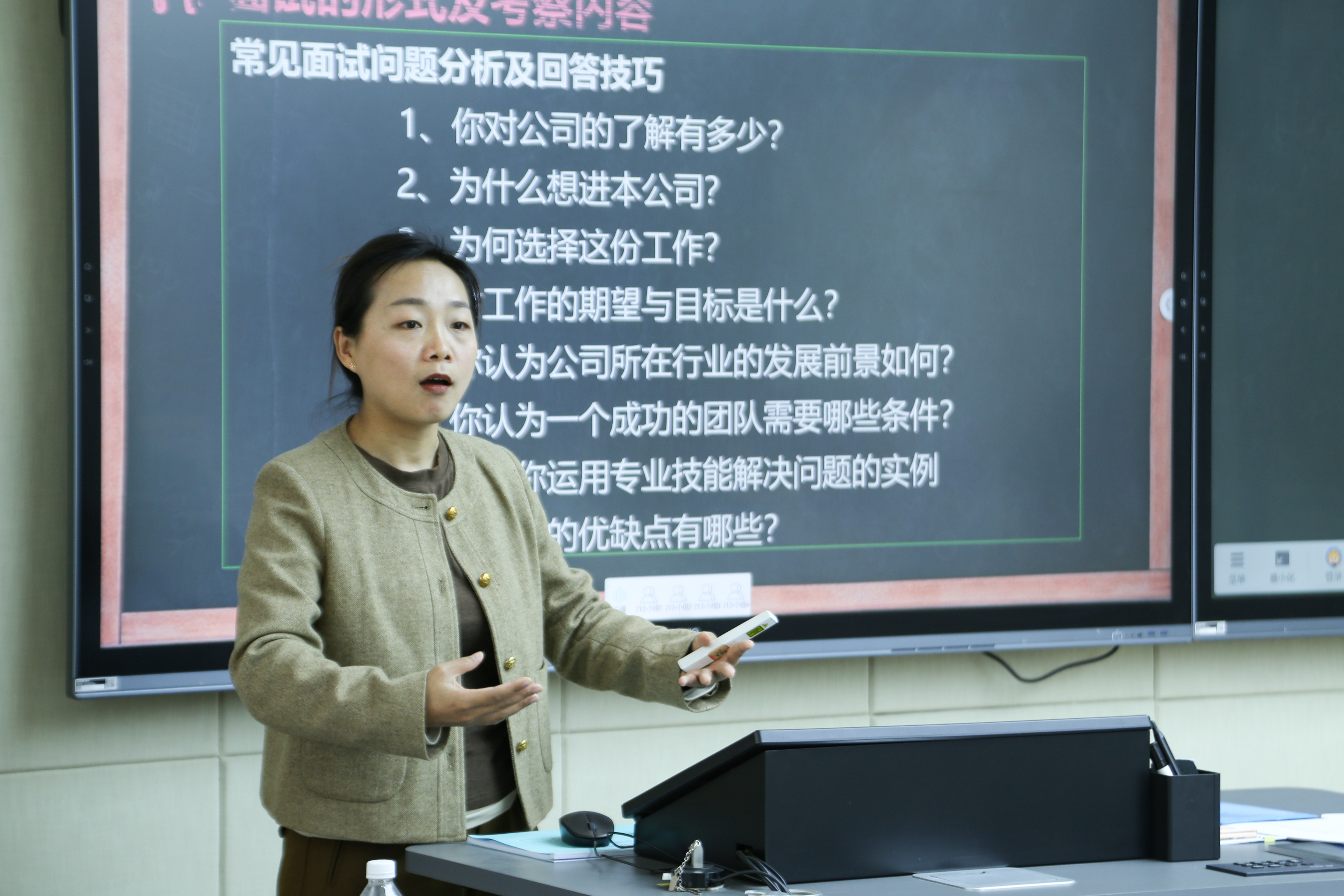 在此次讲座中,杨婷针对面试的形式和考察内容、不同场景专项面试的形式及应对策略、专项面试之无领导小组讨论解析、无领导小组面试体验四个方面进行了解析和讲解,分享在面试中的应试技巧,以及对不同面试场景下如何面对考官回答问题,其中着重讲解了在面试中沟通技巧运用的重要性、人际交往的必要性,杨婷结合自己的工作经验和实践案例给同学们作了具体分析,指明了面试技巧的重点和要点,根据不同面试场景为同学们做了正向分析,并且鼓励同学们积极的了解市场行情,并在应试技巧方面做出了指导。