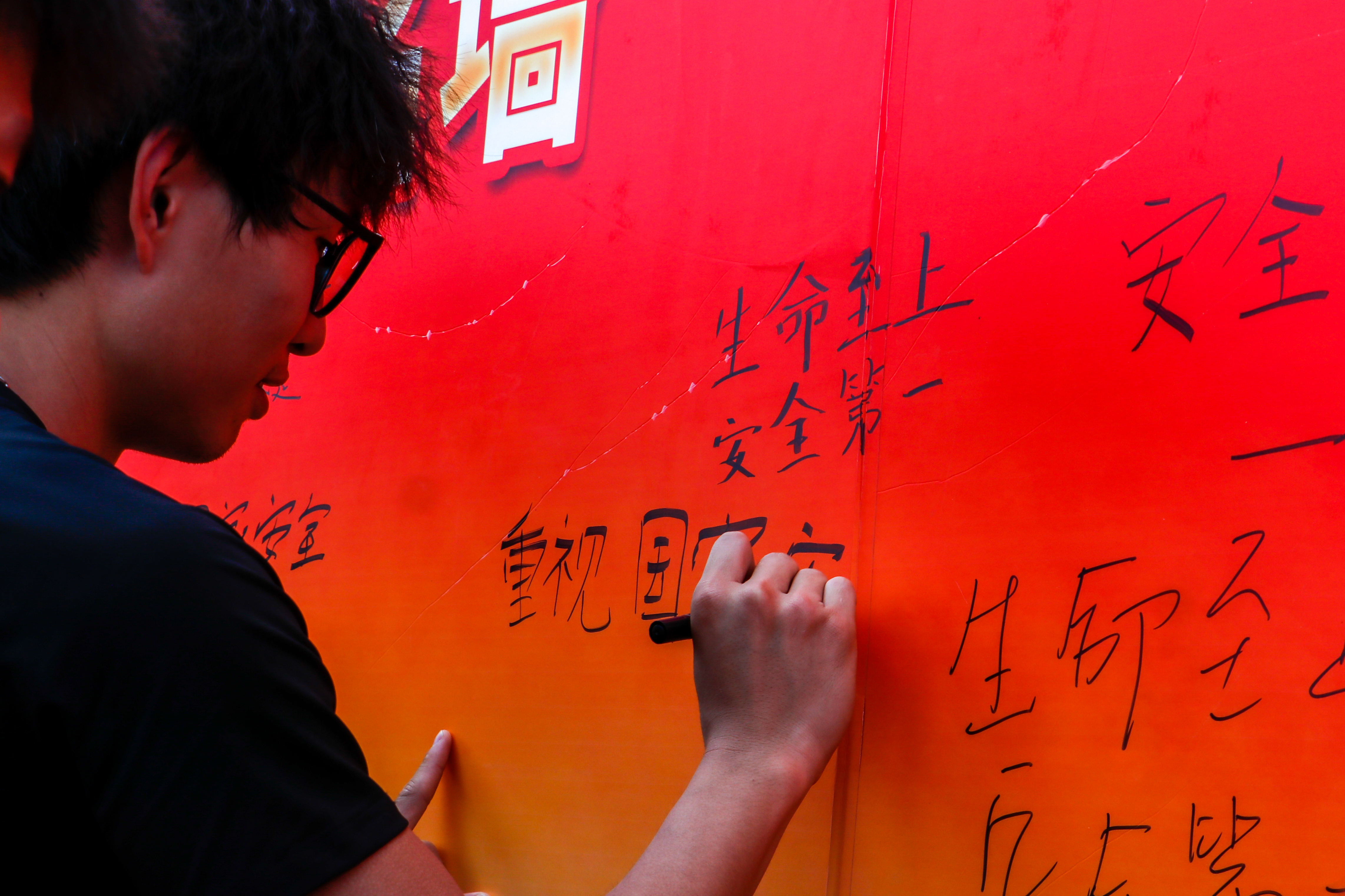 随后,学生代表带领宣誓,并与各学生代表到“安全承诺墙”签名。