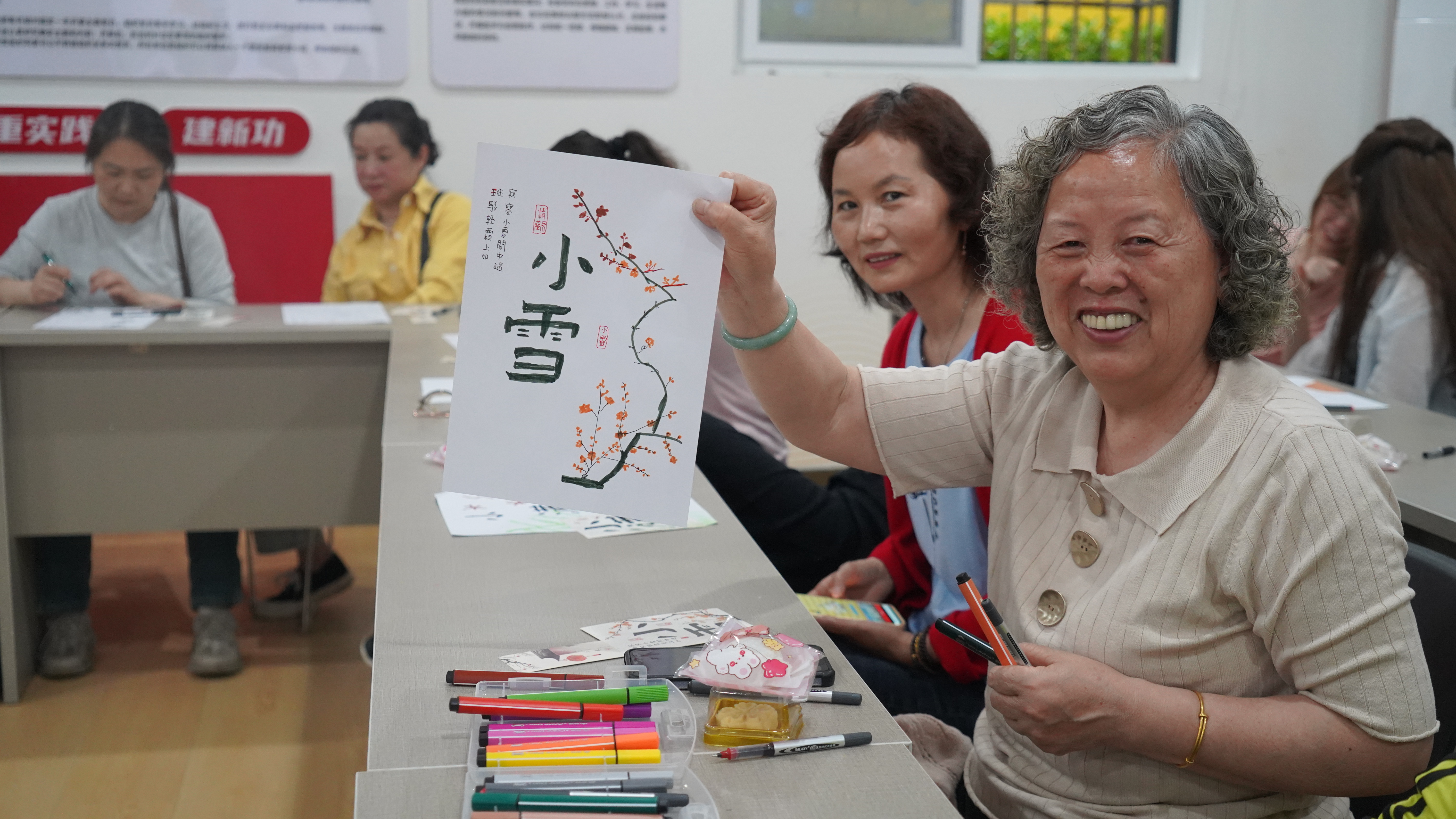 阿姨们画二十四节气海报。学院供
